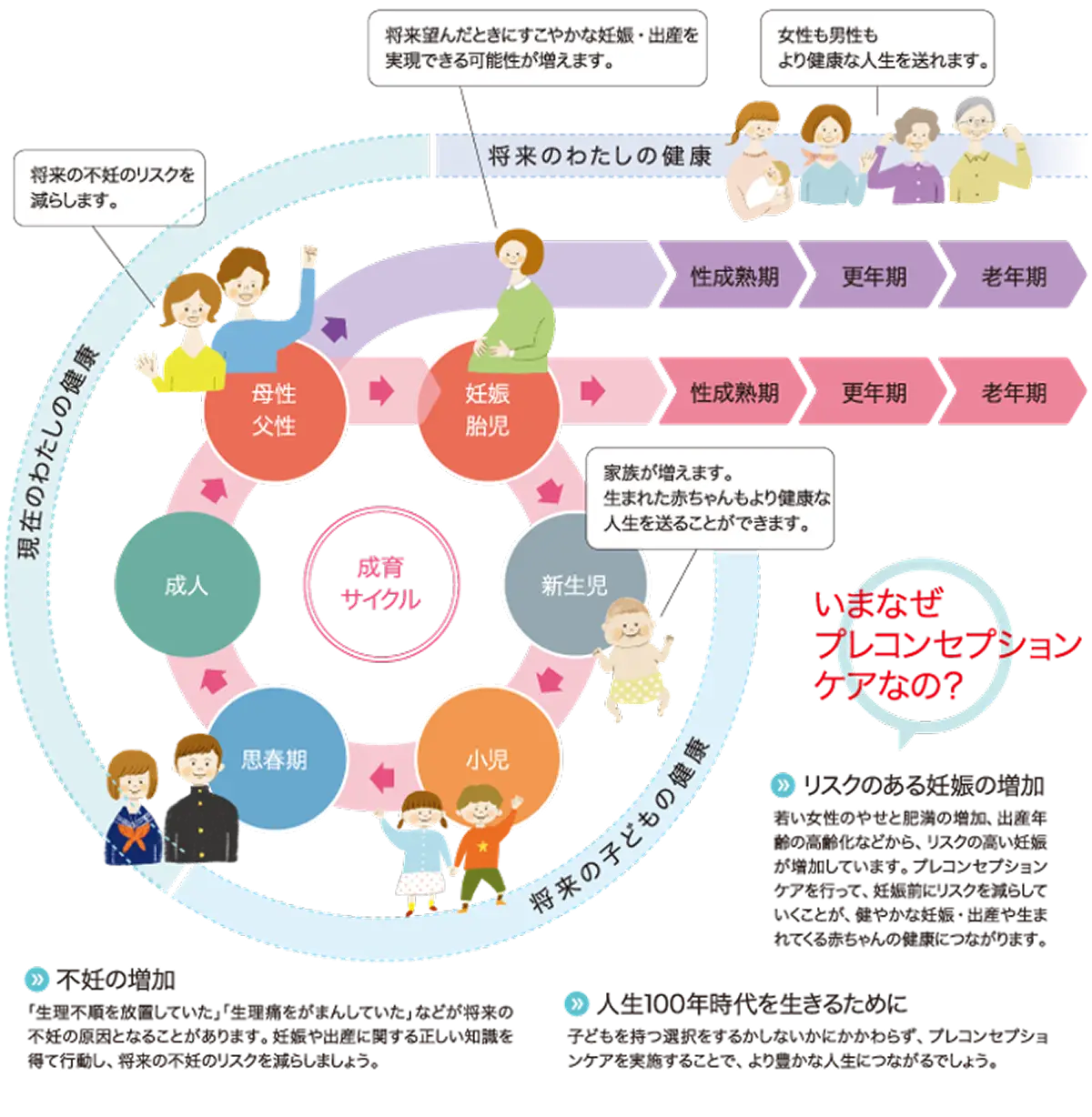 プレコンセプションケアは、将来の妊娠を希望する人だけでなく、思春期以降、妊娠可能な年齢のすべての人に必要なものです。